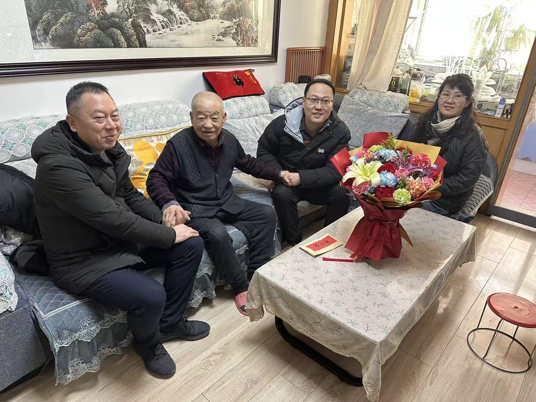 新春佳节将至,2月6日,西固区非公有制经济组织党委委员丁辉同志与公司党委书记一行,专程走访慰问公司97岁高龄的建国前党员张升元,为老人送去党和政府的关怀温暖与节日美好祝福。